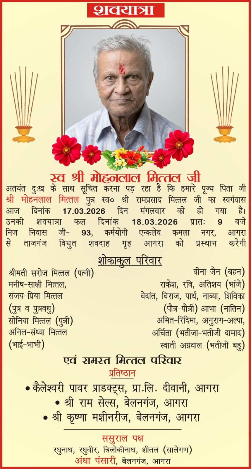 Obituaries of Agra on 18th March 2026