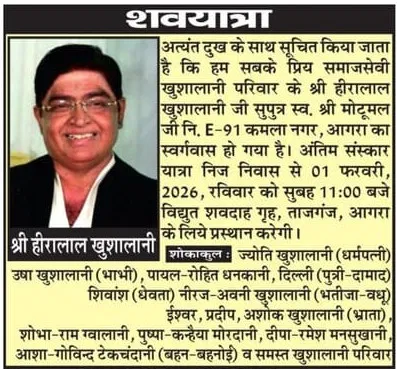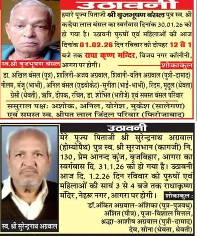 Obituaries of Agra on 1st February 2026