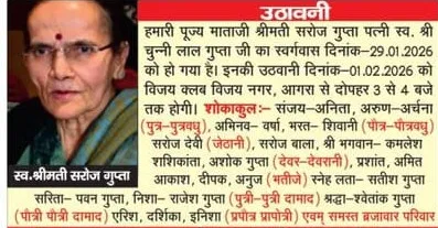 Home आगरा Obituaries of Agra on 1st February 2026