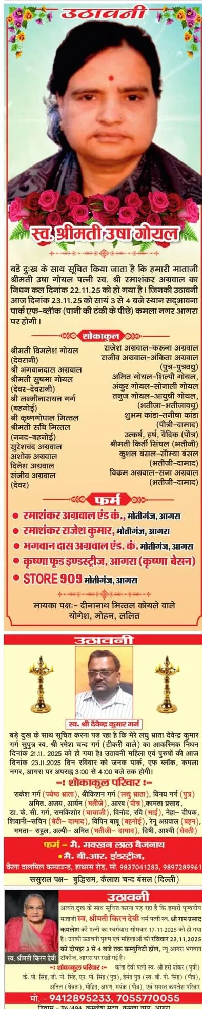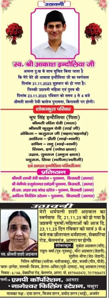 Home आगरा Obituaries of Agra on 23rd November 2025