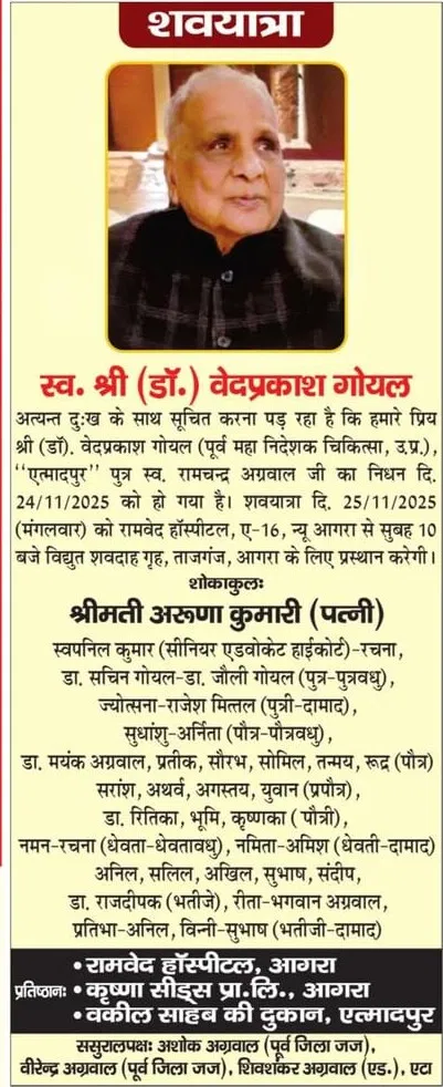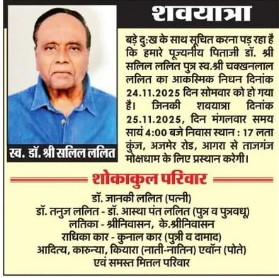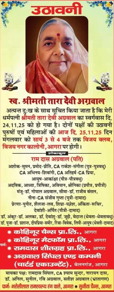 Home बिगलीक्स Obituaries of Agra on 25th November 2025