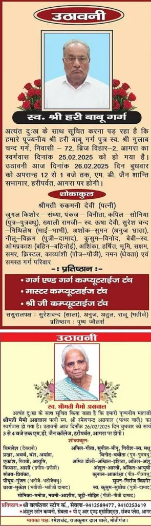 Home आगरा Obituaries of Agra on 26th February 2025 #Agra