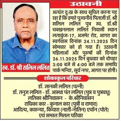 Obituaries of Agra on 26th November 2025