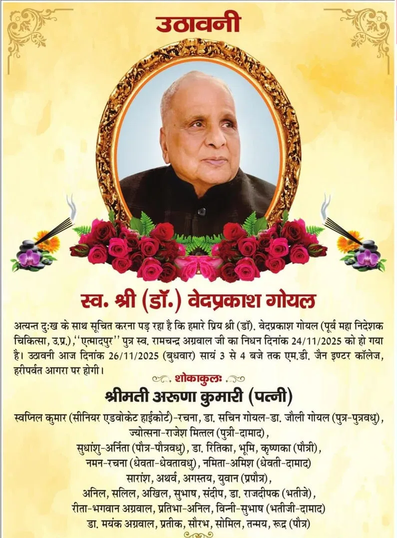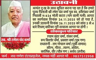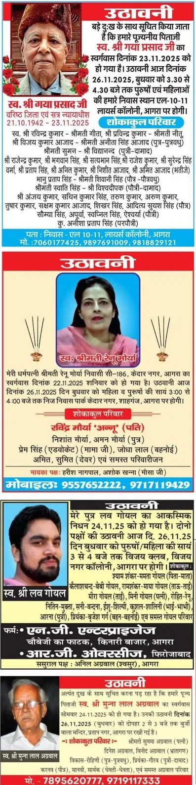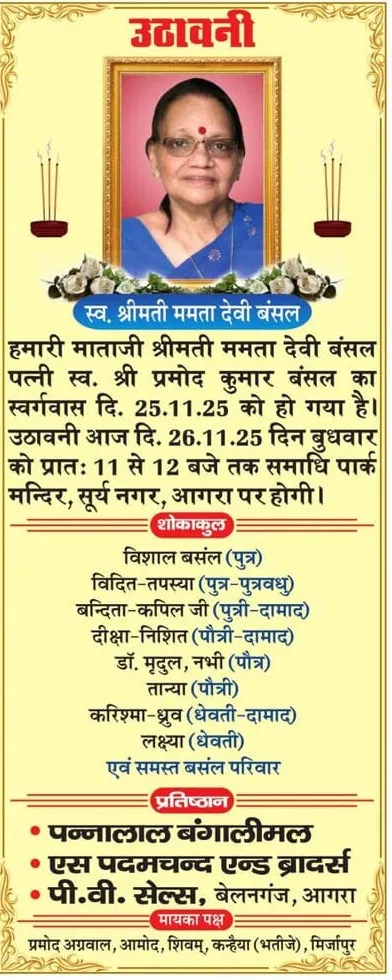 Home आगरा Obituaries of Agra on 26th November 2025
