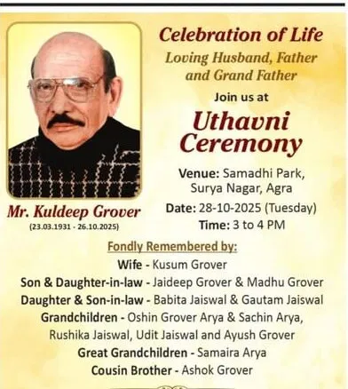 Obituaries of Agra on 28th October 2025