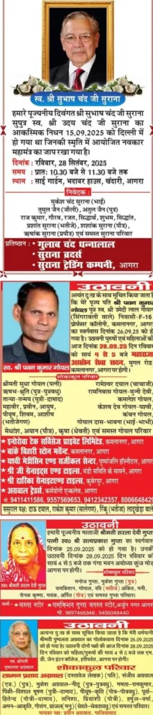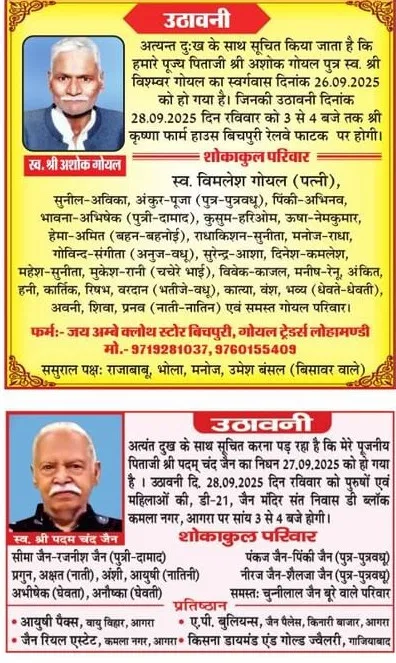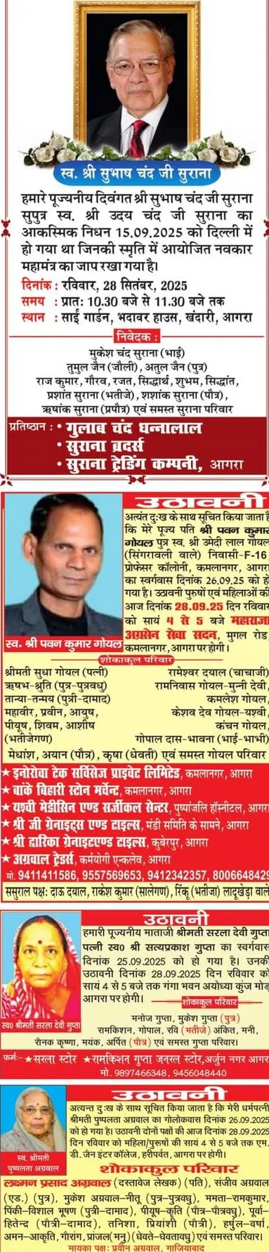 Home आगरा Obituaries of Agra on 28th September 2025