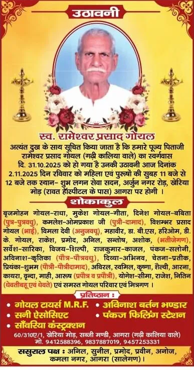 Home आगरा Obituaries of Agra on 2nd November 2025