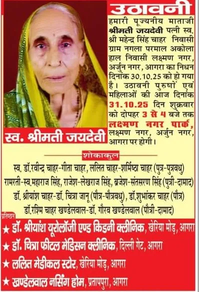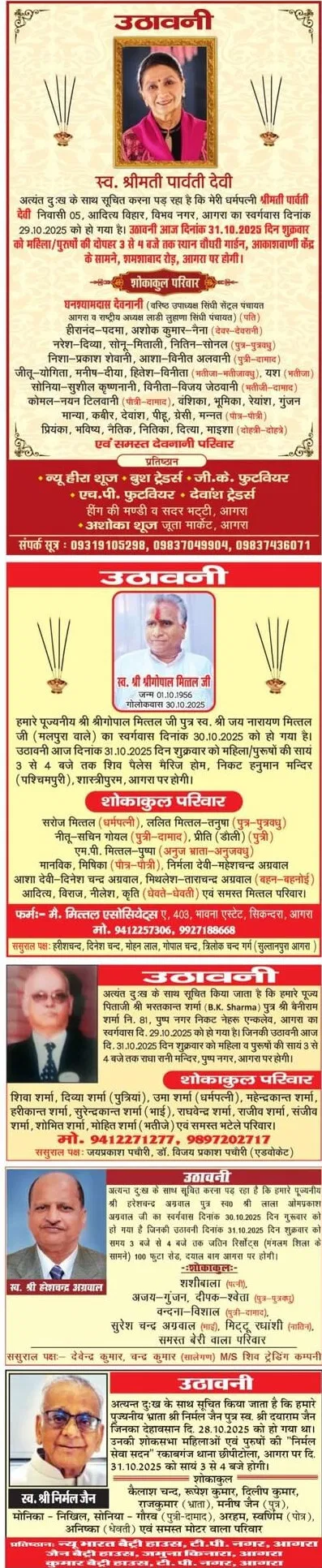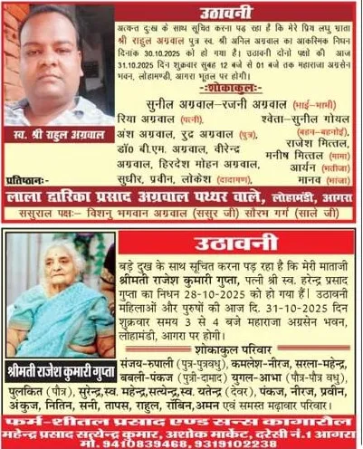 Home बिगलीक्स Obituaries of Agra on 31st October 2025