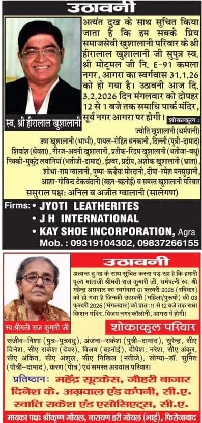 Home आगरा Obituaries of Agra on 3rd February 2026