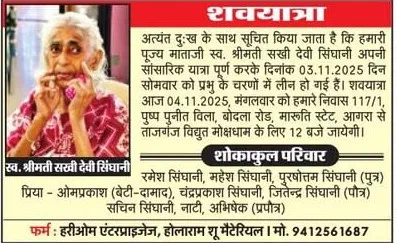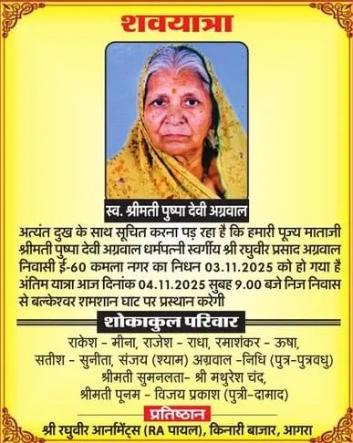 Home आगरा Obituaries of Agra on 4th November 2025