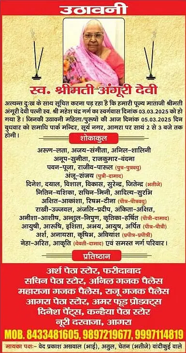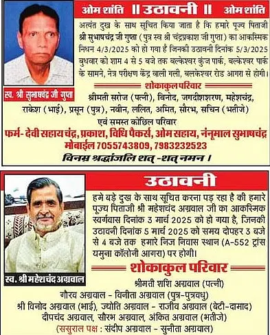 Obituaries of Agra on 5th March 2025 #Agra