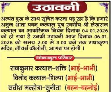 Home आगरा Obituaries of Agra on 6th January 2026
