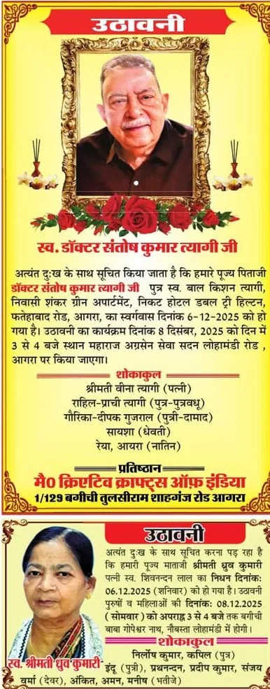 Home आगरा Obituaries of Agra on 8th December 2025