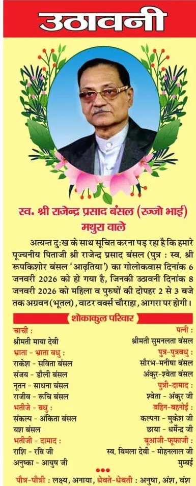 Home आगरा Obituaries of Agra on 8th January 2026