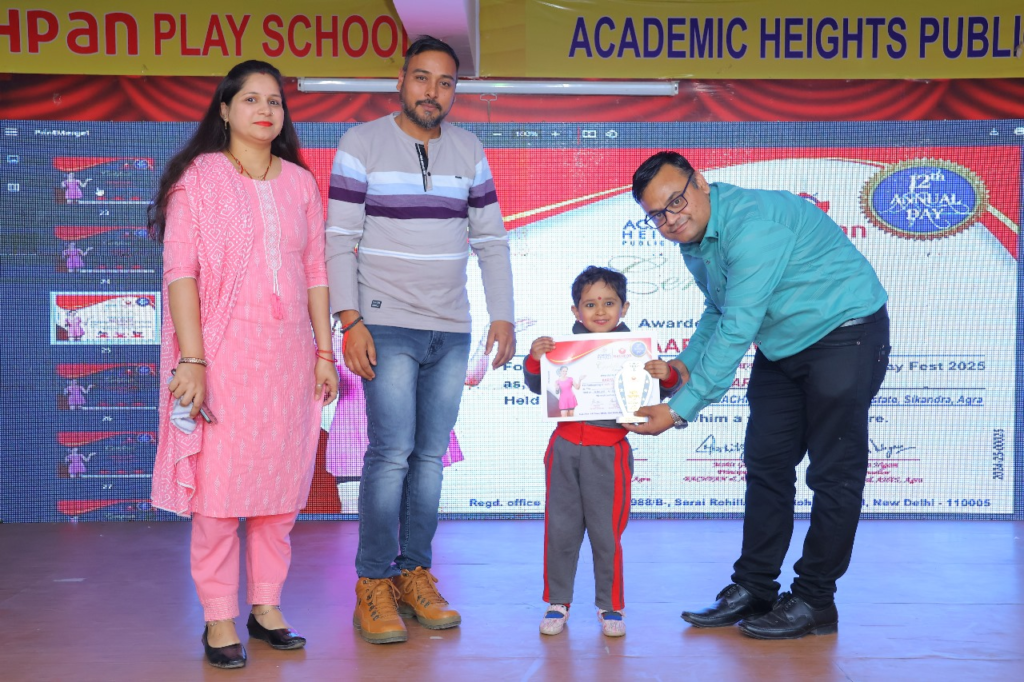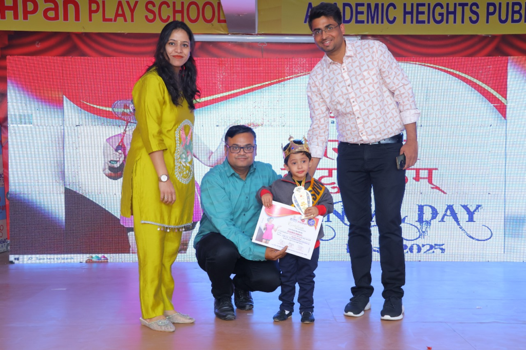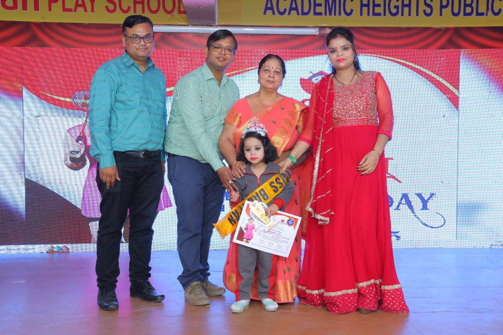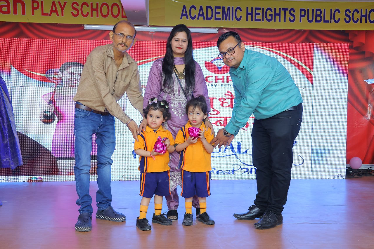 उनके आत्मविश्वास और उत्साह ने दर्शकों को मंत्रमुग्ध कर दिया। कार्यक्रम का एक मुख्य आकर्षण प्रतिष्ठित पुरस्कारों के माध्यम से उत्कृष्ट छात्रों की मान्यता थी, जिसमें शैक्षणिक और पाठ्येतर गतिविधियों में उनकी उपलब्धियों का जश्न मनाया गया। छात्रों को ओलंपियाड पुरस्कार, वार्षिक दिवस पुरस्कार और प्रमाण पत्र के द्वारा सम्मानित किया गया। इस वर्ष, कक्षा प्लेग्रुप में मास्टर बचपन [AYAANSH BANSAL] को और मिस बचपन [SANSKRITI JAIN] को उनकी असाधारण प्रतिभा, आत्मविश्वास और समग्र उत्कृष्टता को मान्यता देते हुए प्रदान किया गया।