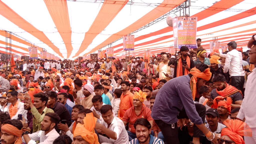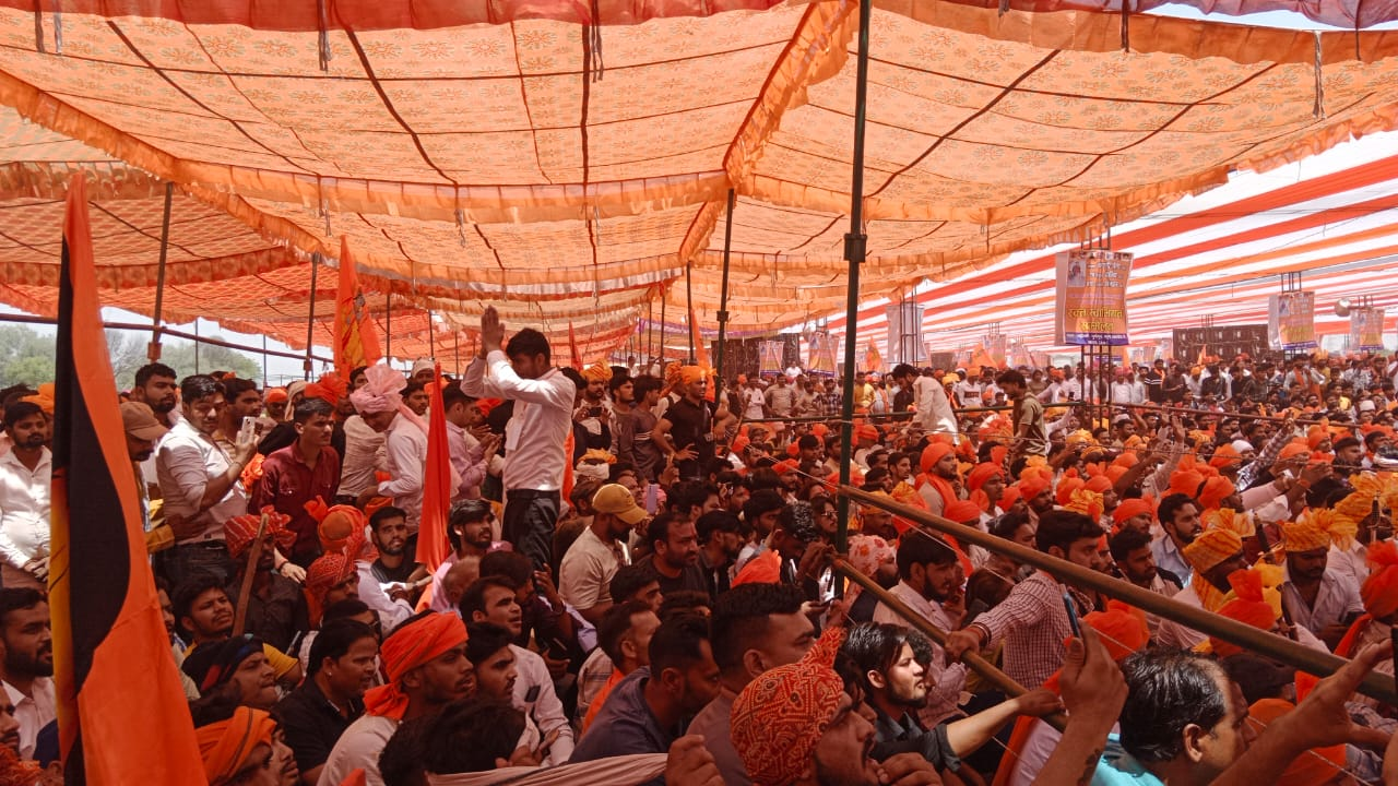उत्साहित भीड़ की नारेबाजी और देशभर से आए लोगों की भीड़ को नियंत्रित करने के लिए मंच संचालन संभाले क्षत्रिय करणी सेना के राष्ट्रीय अध्यक्ष राज शेखावत ने करणी माता की बार-बार सौगंध दिलाई। हिंदू सनातन सभा की अगुवाई में आयोजित रक्त स्वाभिमान सम्मेलन में क्षत्रिय करणी सेना ने संजय प्लेस आगरा में सांसद रामजीलाल सुमन के आवास पर तोड़फोड़ और लाठीचार्ज के दौरान 26 मार्च को घायल हुए दीपक आदि सभी कार्यकर्ताओं को मंच पर बुलाकर सम्मानित किया गया। सम्मेलन स्थल पर भीड़ का लगातार आना जारी है।