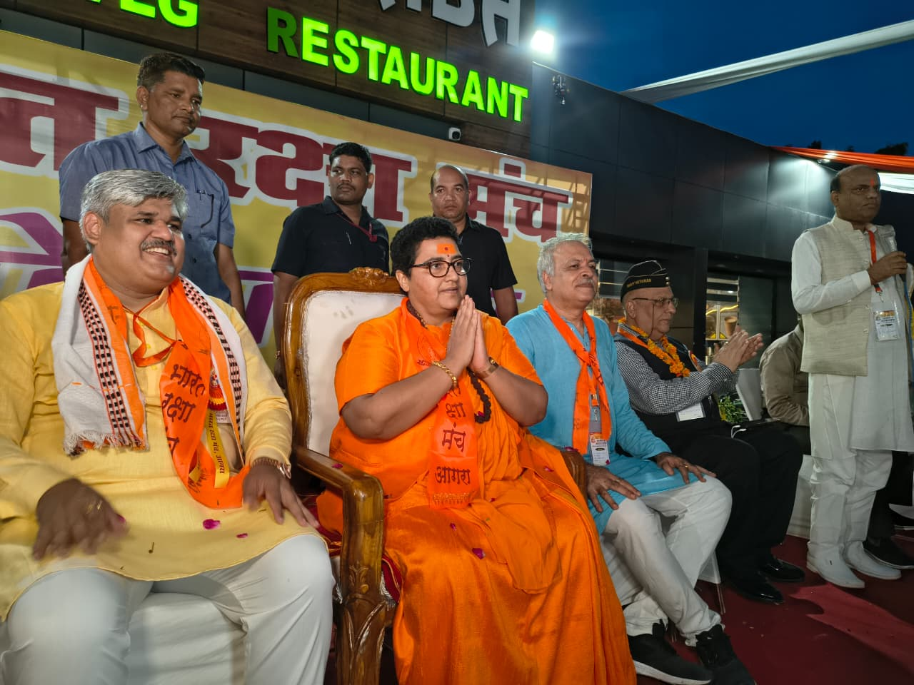 साध्वी प्रज्ञा ठाकुर ने कहा कि सनातन धर्म ही भारत की आत्मा है। यदि सनातन धर्म कमजोर होगा तो भारत भी कमजोर होगा। हिंदू समाज को संगठित होकर अपनी सांस्कृतिक धरोहर और राष्ट्र की अस्मिता की रक्षा करनी होगी। उन्होंने कहा कि धर्मांतरण और जनसंख्या असंतुलन आज राष्ट्र के सामने सबसे बड़ी चुनौतियाँ हैं। हमें अपने बच्चों को देशभक्त बनाकर तैयार करना होगा, तभी भारत पुनः विश्वगुरु के रूप में प्रतिष्ठित हो सकेगा।