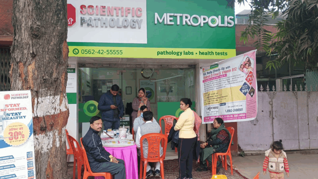 आगरालीक्स…टूंडला में साइंटिफिक मेट्रोपोलिस पैथोलॉजी ने लगाया हेल्थ कैंप. 400 से अधिक लोगों ने कराई स्वास्थ्य जांच. स्वास्थ्य परामर्श का भी उठाया लाभ