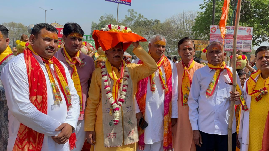 लगभग 3100 से अधिक श्रद्धालुओं के सिर पर श्रीफल, पुष्प, अशोक पत्रों से सुसज्जित पीताम्बर कलश थे। विधि विधान से पूजन कर कलश यात्रा का शुभारम्भ अग्रधाम सेवा सदन, सेवला से प्रारम्भ किया गया। जहां बग्गी में विराजमान थे चित्रकूट के मदनगोपाल दास जी महाराज। सियाराम के जयकारों से गुंजायमान कलश यात्रा ऐसा अभूतपूर्त नजारा था जहां भक्ति के सामने हर कोई नतमस्तक होता नजर आया। कथा स्थल पीएस गार्डन पहुंचकर कलश यात्रा ने विश्राम लिया, जहां वैदिक मंत्रोच्चारण के साथ कलशों को स्थापित किया गया। आयोजन समिति के अध्यक्ष राम सेवक शर्मा (जय भोले) व महामंत्री डॉ धर्मेन्द्र कुमार त्यागी ने सभी श्रद्धालुओं को कथा श्रवण के लिए आमंत्रित किया। इस अवसर पर मुख्य रूप से मुख्य यजमान सिलेंद्र विथरिया, हाकिम सिंह त्यागी, दीनदयाल मित्तल, , ऋषि उपाध्याय, रामवीर सिंह चाहर, , अशोक फौजदार ,महावीर त्यागी, किशोर लवानिया , रनवीर सोलंकी, सौरभ शर्मा, सतेंद्र परासर, जितेंद्र प्रधान, राजेंद्र बरुआ, भगवान दास, राकेश मंगल, रविन्द्र सिंह,मुरारी लाल त्यागी, सोम मित्तल, किशन यादव,कल्याण सिंह,ऋषि विथरिया जी सहित हजारों लोगों की उपस्थिति रही।
