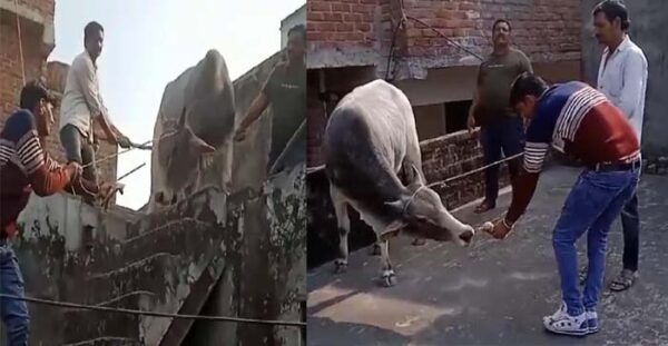 आगरालीक्स…आगरा में सांड़ दो मंजिला मकान की छत पर चढ़ गया. लोगों को उतारने में छूट गए पसीने.. आगरा में एक अजब मामला...