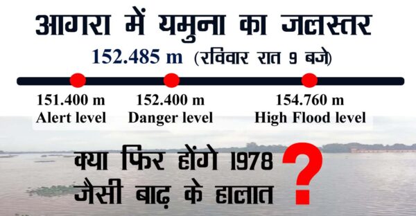 आगरालीक्स…आगरा में रात 9 बजे यमुना का जलस्तर और बढ़ा…दयालबाग के अमर विहार, मनोहरपुर में भरने लगा पानी. भैरों नाला मारने लगा बैक....