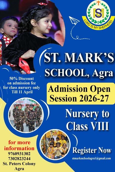 आगरालीक्स…आगरा के सेंट मार्क्स स्कूल में सत्र 2026-27 के लिए एडमिशन शुरू. नर्सरी से कक्षा 8वीं तक के लिए करें एप्लाई. कक्षा नर्सरी...