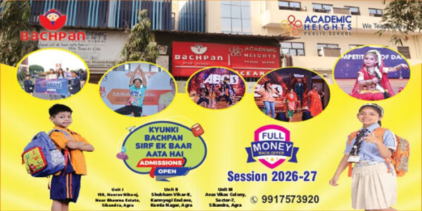 आगरालीक्स…Agra News: आगरा में बचपन प्ले स्कूल एवं एकेडमिक हाइट्स पब्लिक स्कूल, भावना एस्टेट, सिकंदरा, आगरा में सत्र 2026–27 के लिए एडमिशन शुरू...