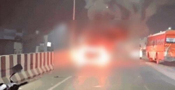 आगरालीक्स…आगरा में हाइवे पर चलती कार में लगी आग. समय रहते उतरे कार सवार, कुछ ही देर में आग की लपटों से पूरी...