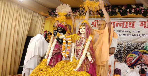आगरालीक्स….फूलों की होली से महका आगरा का श्रीजगन्नाथ मंदिर, गुंजिया और ठंडाई का लगा भोग. पांच कुंतल फूलों से हुआ राधा—कृष्ण का अभिषेक…....