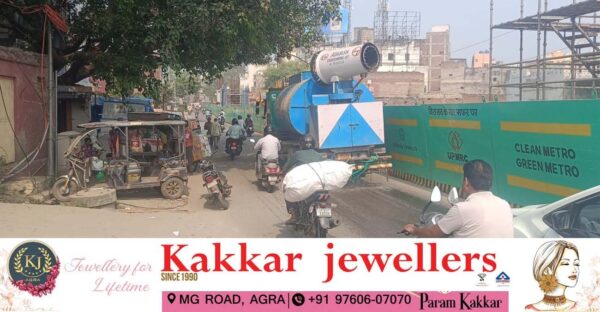 Agra News: Dust and pollution linger in Agra’s air. The Metro is continuously spraying in construction areas…#agranews