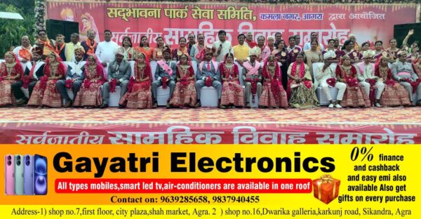 आगरालीक्स…आगरा में देवोत्थान पर जीवन भर के पवित्र बंधन में बंधे ग्यारह जोड़े. श्रीराम चौक से ग्यारह बेटियों को बैंड बाजों संग बारात...