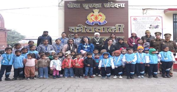 Agra News : Little students of Sharda World School – Early Learning Centre (ELC) visited the Sikandra Police Station Agra