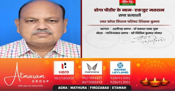 आगरालीक्स…Agra News : सपा ने आगरा अलीगढ़ शिक्षक एमएलसी चुनाव के लिए डॉ. चंद्र प्रकाश गुप्ता को बनाया प्रत्याशी, जानें कौन हैं डॉ....