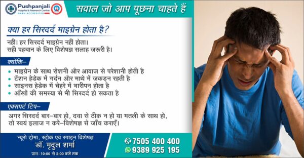ByAgraleaks TeamJanuary 3, 2026आगरालीक्स…लगातार हो रहा सिर में दर्द माइग्रेन तो नहीं. सही पहचान के लिए आगरा के पुष्पांजलि हॉस्पिटल में डॉ. मृदुल शर्मा से लें...