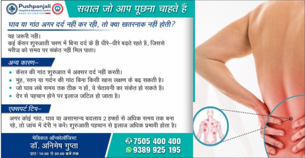 आगरालीक्स…शरीर में घाव या गांठ दर्द नहीं कर रही है तो भी जांच जरूरी. कैंसर का हो सकता है शुरुआती चरण. आगरा के...