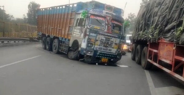 Agra Local news: A truck rammed into a highway divider in Agra, causing massive traffic jam…#agranews
