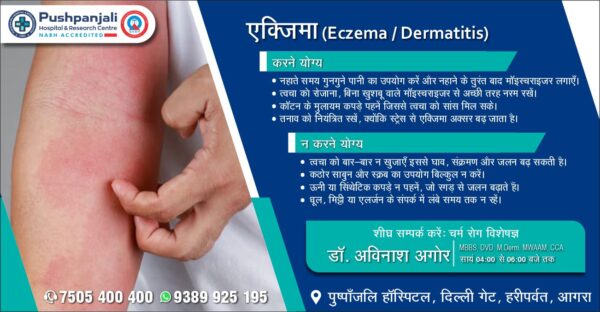 आगरालीक्स…त्वचा लाल, बार—बार खुजली मचना एक्जिमा के लक्षण हैं. पुष्पांजलि हॉस्पिटल में डॉ. अविनाश अगोर से लें परामर्श. संपर्क करें 7505400400, 9389925195 एक्जिमा...