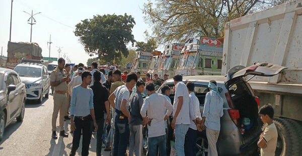 Accident in Agra: A tourist car collided with an truck on the highway in Agra. One died, five injured