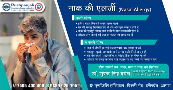 आगरालीक्स…लगातार छींक आना, नाक बहना और खुजली…नाक की एलर्जी के लक्षण हैं. आगरा के पुष्पांजलि हॉस्पिटल में डॉ. सुरेन्द्र सिंह बघेल से लें...