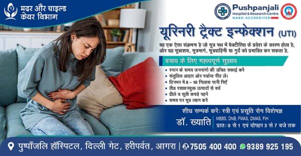 आगरालीक्स…आगरा के पुष्पांजलि हास्पिटल में यूरिनरी ट्रैक्ट इन्फेक्शन का इलाज कराए. स्त्री एवं प्रसूति रोग विशेषज्ञ डॉ. ख्याति से लें परामर्श. संपर्क करें...