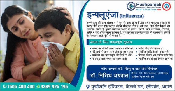 आगरालीक्स…इन्फ्लूएंजा—यह वायरस संक्रमित व्यक्ति के खांसने या छींकने से निकलने वाली बूंदों से फैलता है. पुष्पांजलि हॉस्पिटल में डॉ. निशिथ अग्रवाल से लें...
