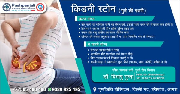 आगरालीक्स…गुर्दे की पथरी, तेजी से बढ़ती एक बीमारी—बेहतर इलाज के लिए पुष्पांजलि हॉस्पिटल में गुर्दा रोग विभाग डॉ. विभांषु गुप्ता से लें परामर्श....