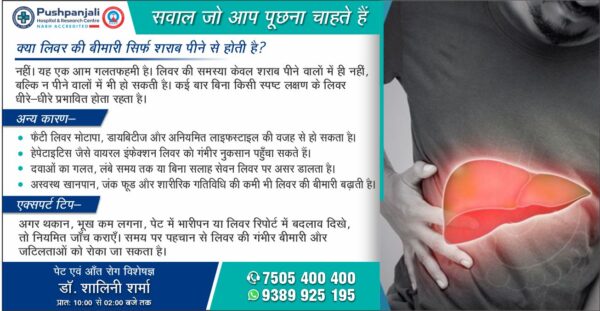 आगरालीक्स…क्या शराब पीने से ही होती है लिवर की बीमारी, जानिए अन्य कारण और बेहतर उपचार के लिए पुष्पांजलि हॉस्पिटल में डॉ. शालिनी...