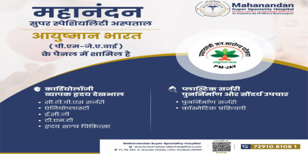 आगरालीक्स…महानंदन सुपरस्पेशियलिटी हॉस्पिटल, ग्रेटर नोएडा आयुष्मान भारत पीएमजेएवाई के पैनल में शामिल। 14 स्पेशियलिटी, 80 बेड का आईसीयू, संपर्क करें 7291081081 ( Mahanandan...