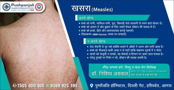 आगरालीक्स…खसरा, एक संक्रामक बीमारी. देर न करें, तुरंत पुष्पांजलि हॉस्पिटल में शिशु व बाल रोग विशेषज्ञ डॉ. निशिथ अग्रवाल से लें परामर्श. संपर्क...