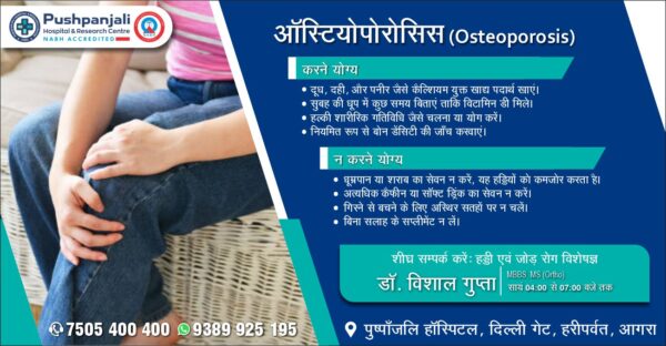आगरालीक्स…ऑस्टियोपोरोसिस—हड्डियां कमजोर और नाजुक हैं तो पुष्पांजलि हॉस्पिटल में डॉ. विशाल गुप्ता से लें परामर्श. संपर्क करें 7505400400, 9389925195 ऑस्टियोपोरोसिस एक ऐसी बीमारी...