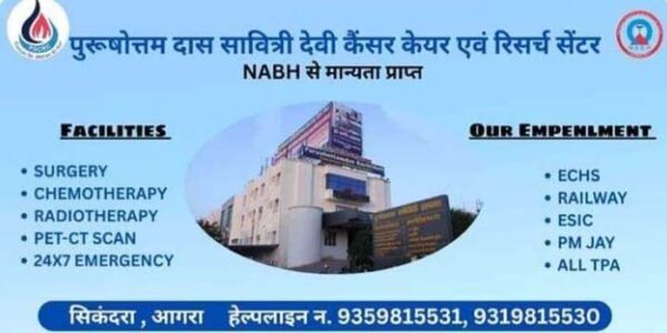 आगरालीक्स…आगरा का पुरुषोत्तम दास सावित्री देवी कैंसर केयर एवं रिसर्च सेंटर. एनएबीएच से मान्यता प्राप्त. कीमोथैरेपी, रेडियोथैरेपी सहित जानिए मरीजों के लिए क्या...