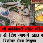 ठाकुर बांके बिहारी मंदिर, वृन्दावन में श्री कृष्ण जन्माष्टमी पर साल 2022 में मंगला आरती के दौरान भगदड़ मचने से श्रद्धालुओं की मौत हो गई थी। ठाकुर बांके बिहारी मंदिर में श्रद्धालुओं की भीड़ लगातार बढ़ने पर मंदिर कॉरिडोर बनाने का प्रस्ताव तैयार किया गया था, पांच एकड़ भूमि पर मंदिर कारिडोर प्रस्तावित किया गया। सुप्रीम कोर्ट में गुरुवार को न्यायमूर्ति बेला एम त्रिवेदी और सतीश चंद्र शर्मा की पीठ ने कॉरिडोर निर्माण के लिए मंदिर के आस पास की 5 एकड़ भूमि खरीदने के लिए मंदिर कोष से 500 करोड़ रुपये उपयोग करने की अनुमति दे दी।