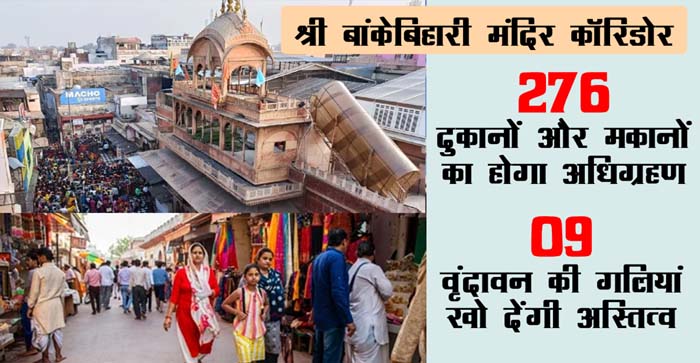 काशी विश्वनाथ मंदिर कॉरिडोर की तर्ज पर ठाकुर बांके बिहारी मंदिर कॉरिडोर बनाया जाएगा। इसके लिए 276 दुकान और मकानों का अधिग्रहण किया जाएगा। इसमें भी 149 आवासीय, 66 व्यावसायिक, 57 मिश्रित आवादी के भवन होंगे। कॉरिडोर के साथ ही ठाकुर बांके बिहारी परिक्रमा मार्ग को भी नया रूप दिया जाएगा। नौ गलियों का अस्तित्व खत्म हो जाएगा।