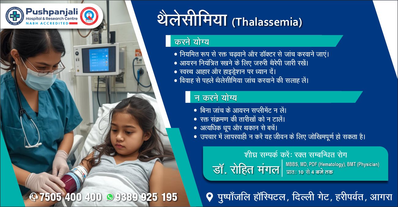 आगरालीक्स…थैलेसीमिया—आगरा के पुष्पांजलि हॉस्पिटल में डॉ. रोहित मंगल से लें परामर्श. संपर्क करें 7505400400, 9389925195